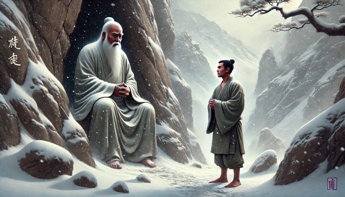 慧可说:“若雪能助我开悟,我愿一直站下去。”