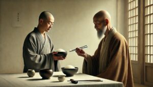 慧可以自己的行为向师父达摩展示决心,达摩以幽默方式回答。