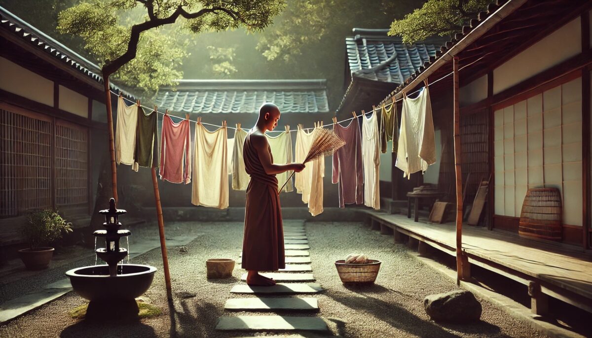 云门禅师通过晒衣服的行为教导弟子放下执念。