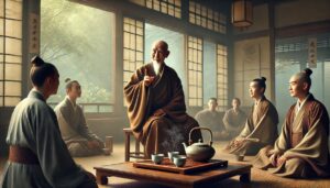 舂米悟道 ussomc10Jan 16, 2025Jan 20, 2025 舂米悟道 背景: 慧能因听到师父的开示而彻底明心见性。 故事内容: 慧能在黄梅寺时,被安排舂米。 一日,五祖弘忍对弟子们说:“佛法之道,在于不住于外,不迷于内,不著于中。” 慧能听后心中大震,自言道:“我本具佛性,为何还要向外求佛?”从此顿悟。 禅意: 佛性本自具足,不在外求,悟道的关键在于回归本心。 Post Views: 90 <span class="nav-subtitle screen-reader-text">Page</span> Previous Post煮茶修行 Next Post吃茶去 Related Posts 脚步悟道 临济通过脚步声让弟子顿悟。 ussomc10Jan 16, 2025 空钵子 德山禅师用空钵象征心的空性。 ussomc10Jan 16, 2025 一炷香 云门禅师用焚香的举动点化弟子。 ussomc10Jan 16, 2025