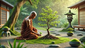 风吹竹 ussomc10Jan 16, 2025 风吹竹 背景: 鸟巢禅师通过风吹竹林的景象点化修行的道理。 故事内容: 弟子问:“师父,修行中如何面对纷扰?” 鸟巢指着风中摇曳的竹林,说:“风虽动,竹不离根;心虽动,定不失本。” 弟子大悟:“修行者虽在红尘,但本心不动。” 禅意: 修行如竹林,虽受外界扰动,但心中有根,便能保持内心的宁静。 Post Views: 105 <span class="nav-subtitle screen-reader-text">Page</span> Previous Post果树修行Next Post星辰修行 Related Posts 鱼跃龙门 石头禅师用鱼跃龙门的象征解释修行的飞跃。 ussomc10Jan 18, 2025 滴水入海 黄檗禅师用水滴归海比喻修行的归一。 ussomc10Jan 18, 2025 雪中修行 慧可禅师用雪中禅坐的体验讲述修行的坚定。 ussomc10Jan 18, 2025