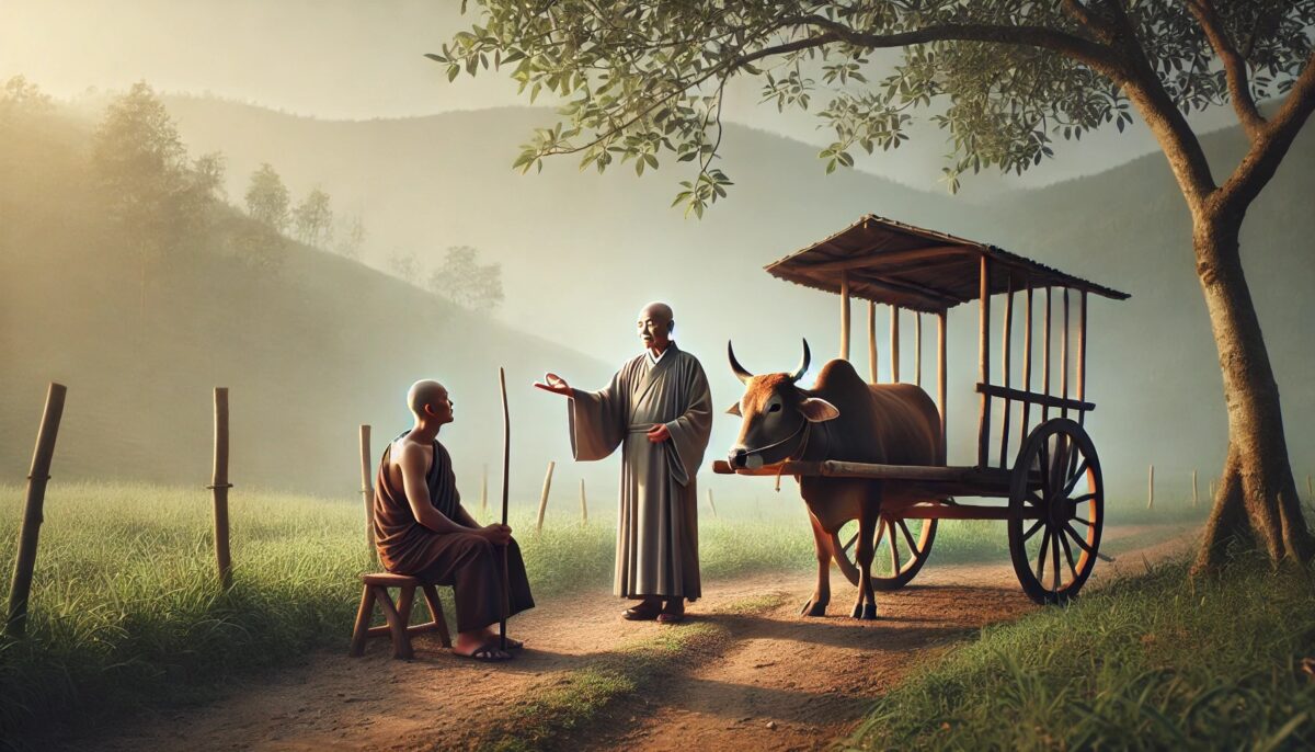 牛车与佛法 ussomc10Jan 17, 2025 牛车与佛法 背景: 黄檗禅师用牛车的象征解答弟子的困惑。 故事内容: 弟子问:“师父,佛法如何运行?” 黄檗说:“如牛车载物,行到目的地后,牛车便停了。” 弟子问:“那牛车还重要吗?” 黄檗答:“若你到了目的地,还记着牛车,你便没到。” 禅意: 修行的方法只是工具,最终需放下工具,回归内心。 Post Views: 85 <span class="nav-subtitle screen-reader-text">Page</span> Previous Post笑与哭 Next Post 咸菜与佛法 Related Posts 我是谁 云门禅师用幽默的回答打破弟子的思维局限。 ussomc10Jan 18, 2025 风吹竹 慧能禅师用自然景象教导弟子无为而安。 ussomc10Jan 18, 2025 走路与修行 临济通过生活中的小事揭示修行的真谛。 ussomc10Jan 18, 2025