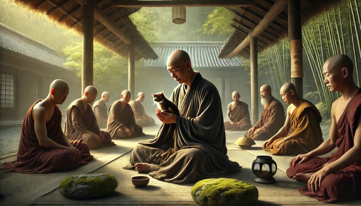 养猫禅 ussomc10Jan 18, 2025 养猫禅 背景: 南泉用极端的行为点化弟子放下分别心。 故事内容: 弟子争论一只猫的归属,南泉拿起猫,说:“若能说出一句禅理,猫就活;否则它就死。” 弟子无言。 南泉斩断猫后说:“若你们放下对错争执,猫本就无事。” 禅意: 修行需超越对错的执着,无分别心即是解脱。 Post Views: 94 <span class="nav-subtitle screen-reader-text">Page</span> Previous Post跳进水中 Next Post耕地修心 Related Posts 我是谁 云门禅师用幽默的回答打破弟子的思维局限。 ussomc10Jan 18, 2025 风吹竹 慧能禅师用自然景象教导弟子无为而安。 ussomc10Jan 18, 2025 走路与修行 临济通过生活中的小事揭示修行的真谛。 ussomc10Jan 18, 2025