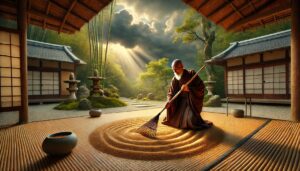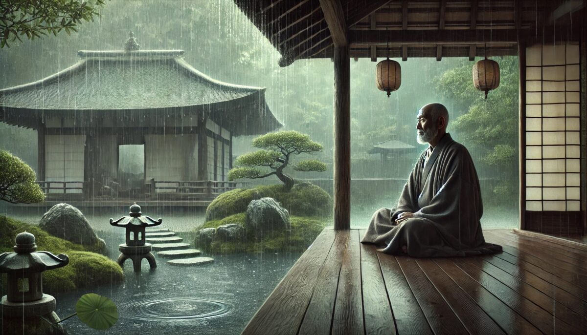 慧可禅师通过听雨的行为教导弟子宁静中的觉察。