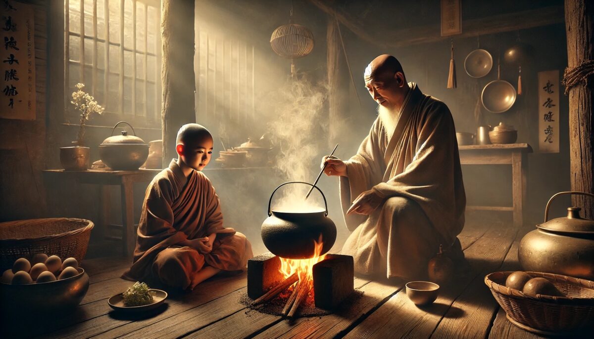 黄檗禅师通过煮饭教导弟子修行的用心。