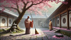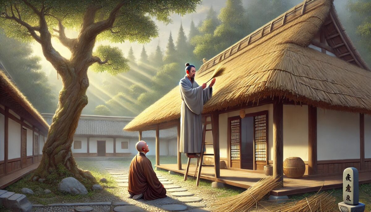 黄檗禅师通过修补屋顶的行为讲解修行的精进。