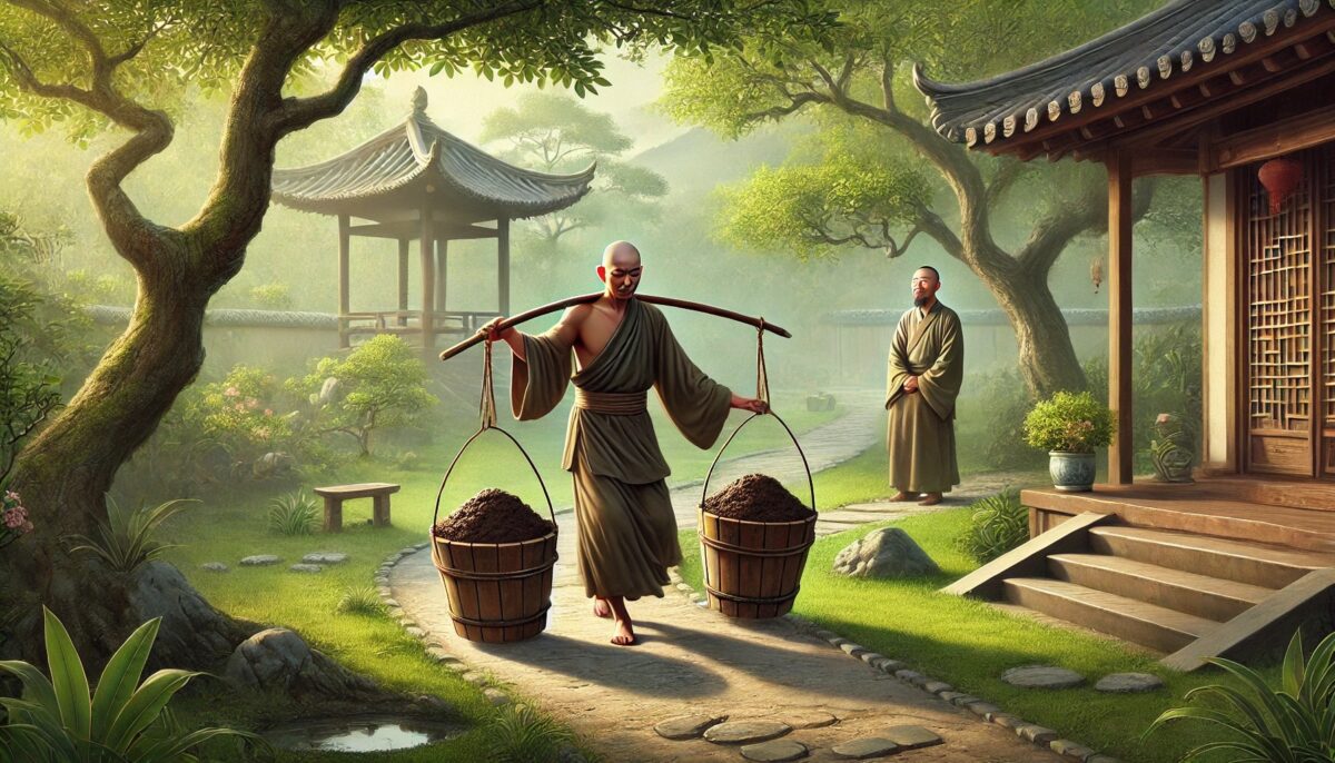 黄檗禅师通过挑粪的行为教导弟子修行的清净心。