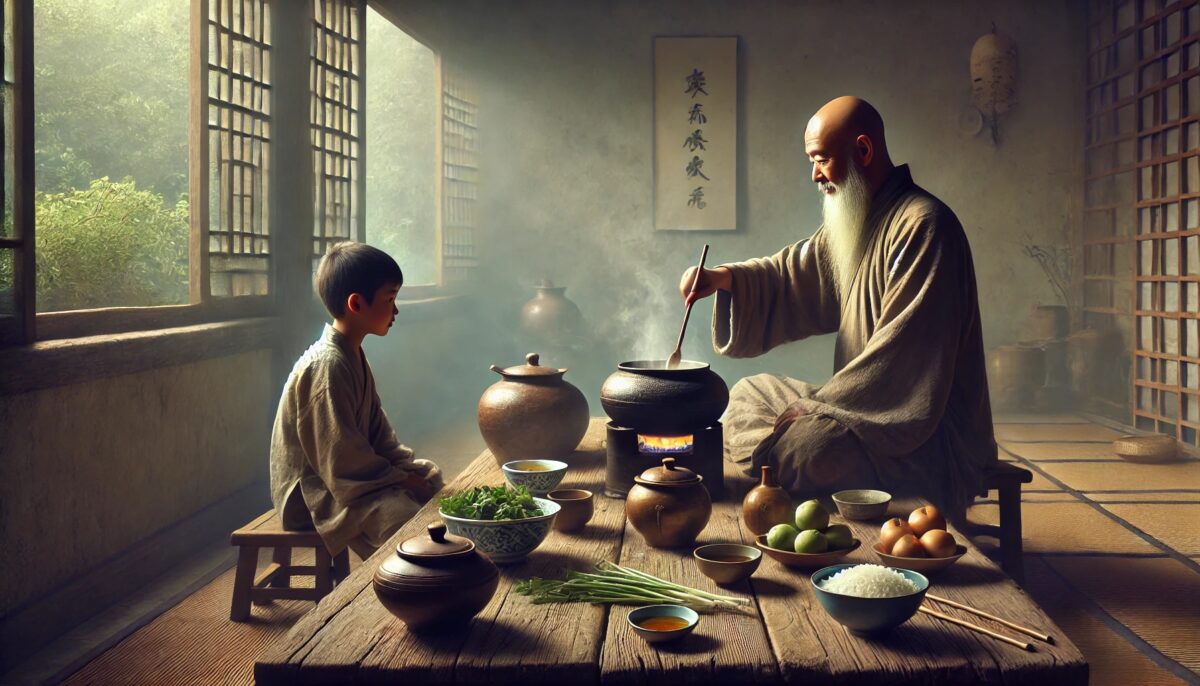 石头正准备做饭,他说:“一日三餐,柴米油盐,处处皆禅;若远离这些,修行便失根。”