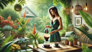 用木勺或竹勺轻轻搅拌,使咖啡粉均匀吸水,帮助风味释放。