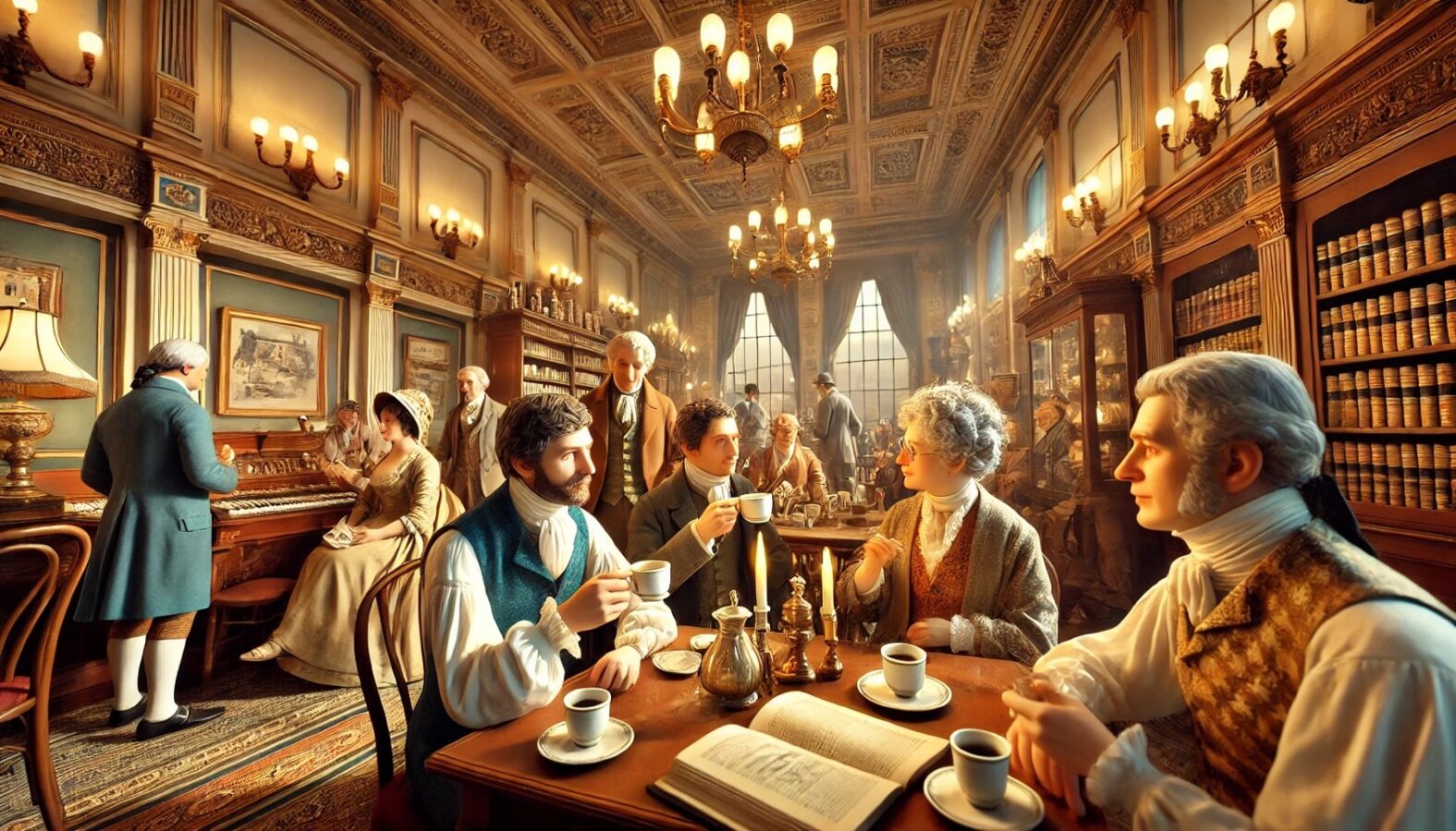 咖啡作为一种具有提神作用的饮品,在17世纪末到18世纪期间,成为欧洲思想交流的重要媒介。相比于酒精饮料,咖啡能够提升警觉性,增强逻辑思维和讨论能力,使知识分子更专注于理性思考和哲学辩论。