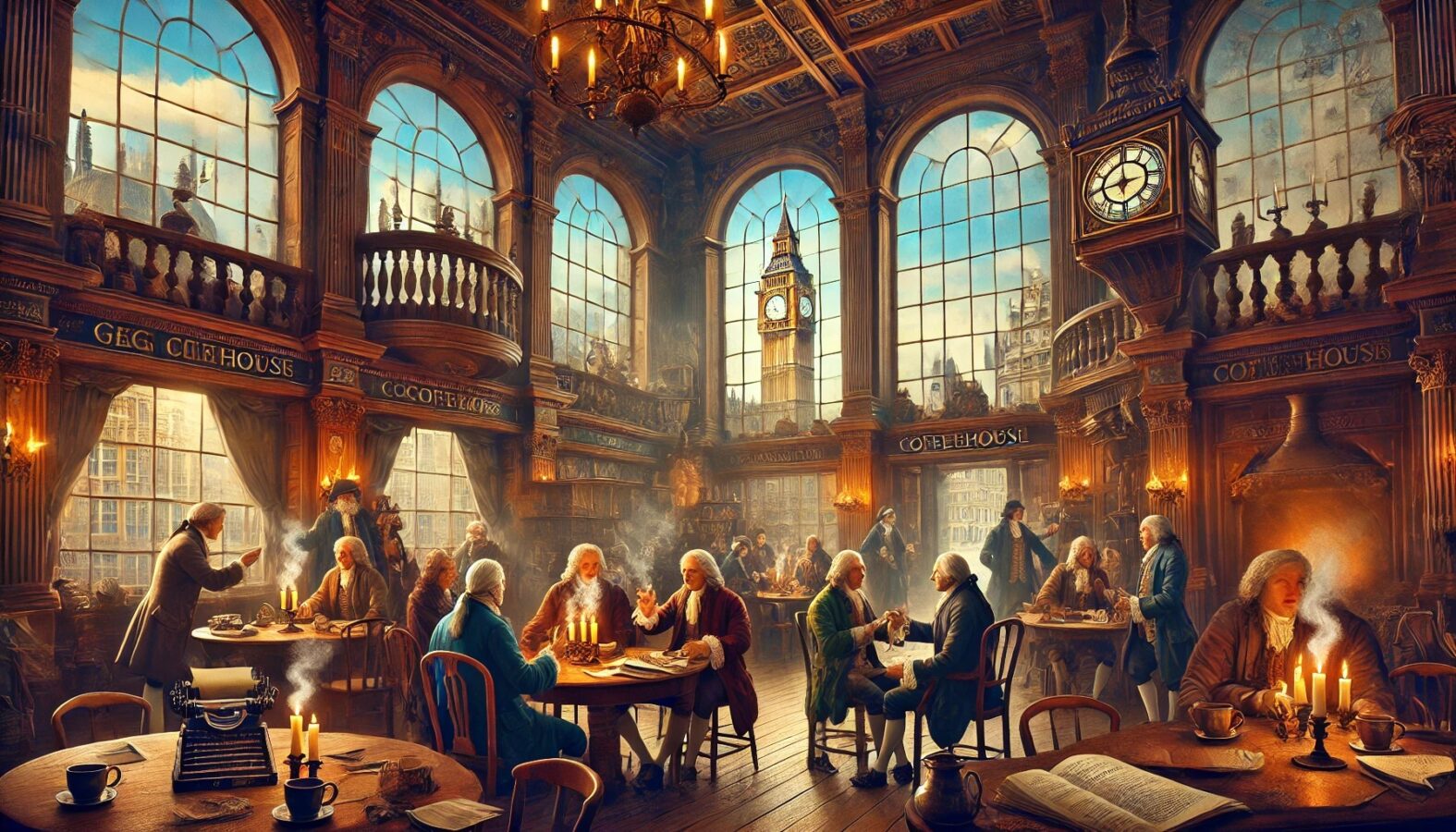 伦敦的第一家咖啡馆由帕斯夸·罗塞(Pasqua Rosée)于1652年开设,短短几十年间,伦敦的咖啡馆数量便突破2000家。由于咖啡馆提供报纸、书籍,并聚集了商人和知识分子,这些场所迅速演变成重要的信息交流中心,甚至被称为“便士大学”,因为只需花费一便士买咖啡,就能获得丰富的信息。
