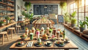在咖啡馆设计上,可以采用自然风格的装修,使用环保家具、绿植装饰,营造温暖放松的氛围。同时,店内菜单应注重提供素食选择,如植物奶咖啡、有机咖啡、纯素甜点等,以增强素食者的归属感。