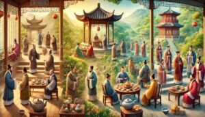 茶道礼仪不仅规范了茶的冲泡与饮用方式,还体现了唐代社会秩序和人际交往的规则。在正式场合,奉茶需用双手,表达敬意;品茶时讲求谦逊,不可贪杯;茶具的摆放亦有规矩,彰显礼仪之美。