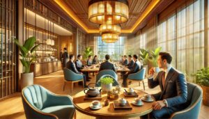 商务茶礼:在商务场合,主人会亲自斟茶,以示尊重,而客人接受茶水时需轻声道谢。