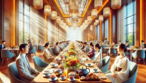 敬茶仪式让家族成员在婚礼当天齐聚一堂,借由敬茶,新人可以更快地融入新的家庭,拉近亲情关系,促进家族和睦。