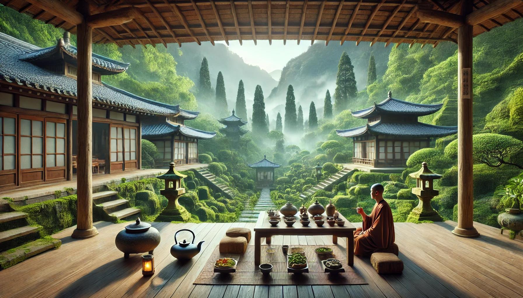 修行者可根据自身需求选择适合的茶类,如绿茶清心,黑茶温养,搭配天然禅食,如糙米、豆类、坚果等。