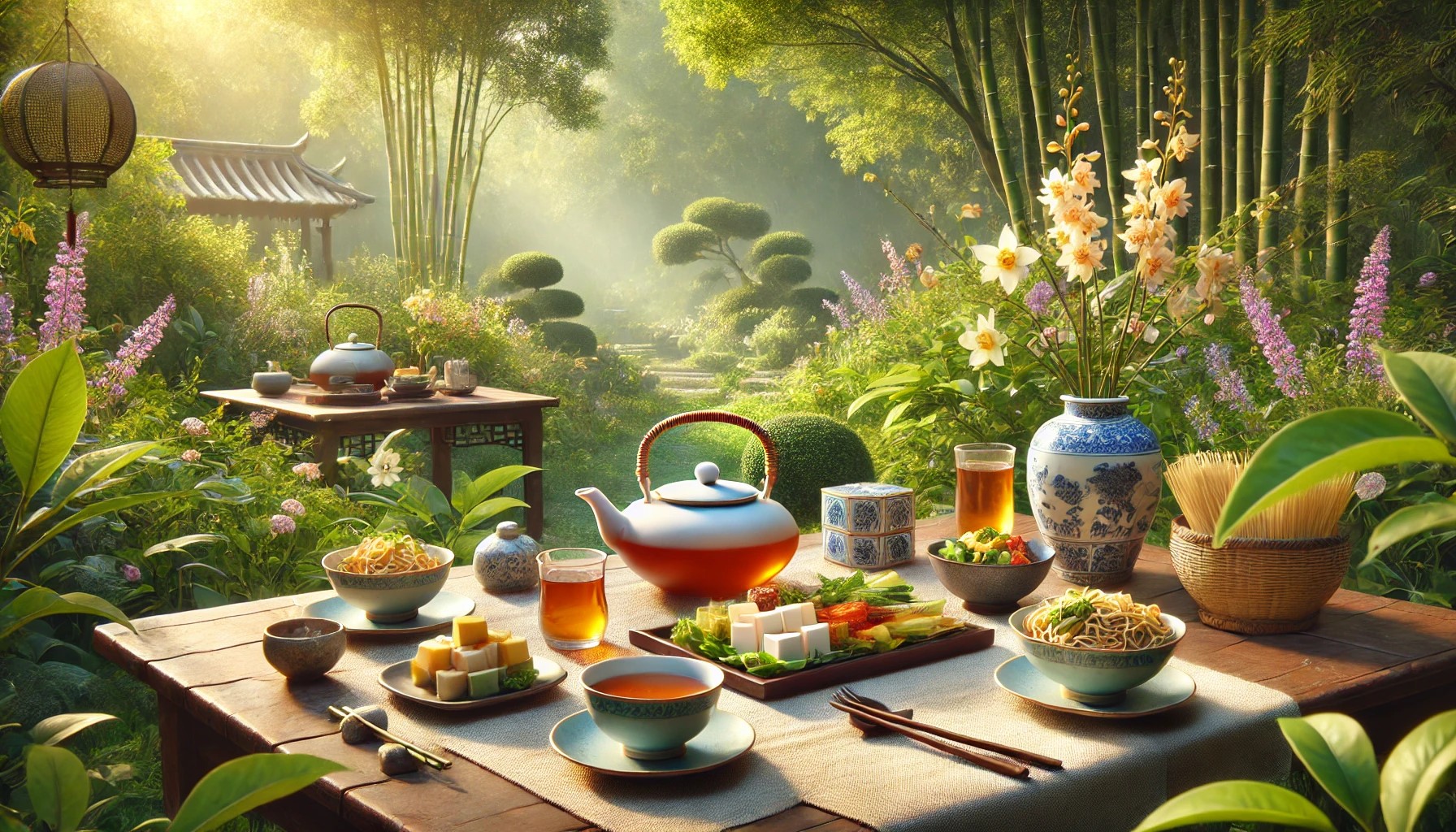 茶叶能调节食物的油腻感、涩感或清淡感。例如,乌龙茶的醇厚回甘可以与稍油腻的豆类食品搭配,使口感更均衡,而绿茶的清新则能提升轻食斋菜的爽口度。