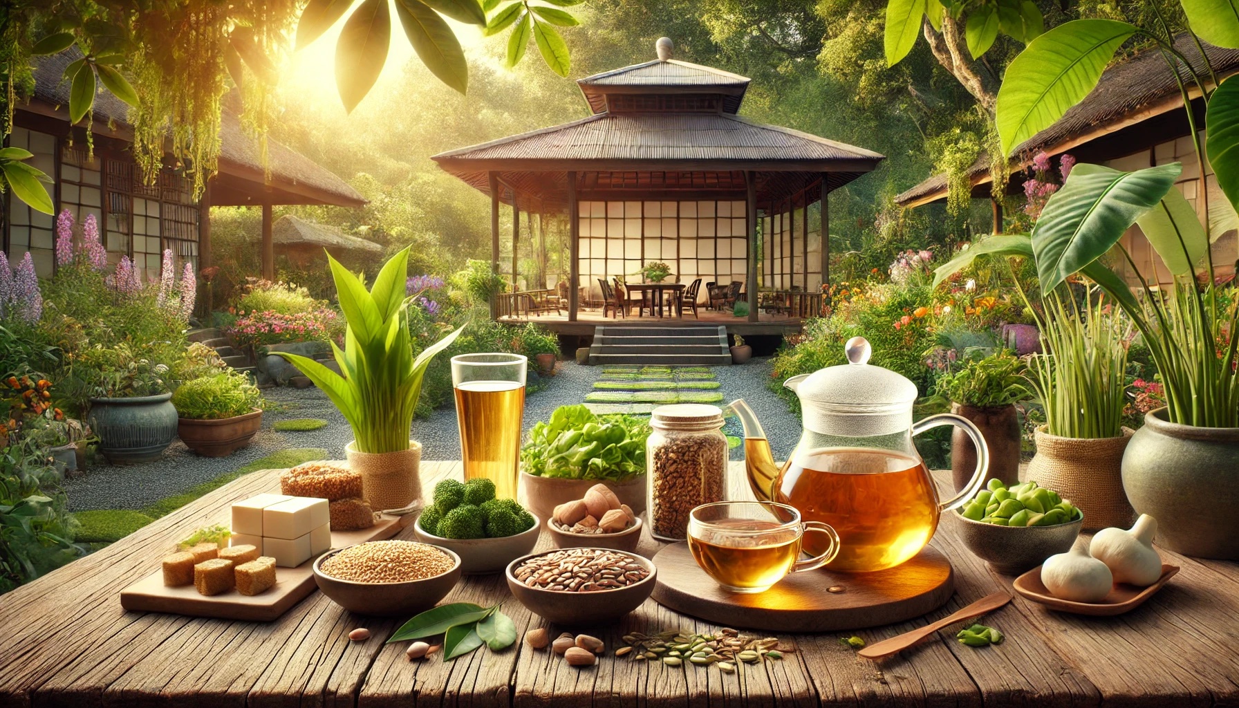 茶中的茶多酚和斋食中的植物雌激素(如黄豆、黑芝麻)可以帮助调节体内雌激素水平,减少更年期症状,如潮热、情绪波动、骨质流失等,使身体保持良好的状态。