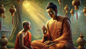 佛陀告诉国王,鸯掘利摩罗已经不再是可怕的杀人魔了。