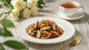 这是一道鲜香滑嫩、营养丰富的斋食菜肴,结合两种不同口感的蘑菇,简单快炒即可享受天然美味。