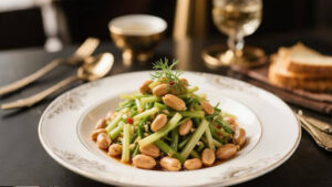 这是一道清香爽口、营养丰富的凉拌斋食,茴香杆独特的香气与花生的香脆口感相结合,简单调味即可美味可口。
