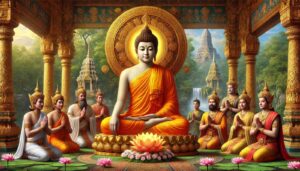 When the four disciples heard these words of the Buddha, they were filled with shame, and their doubts were dispelled. Diligently they practiced the Dharma, and in due course each attained the fruit of Arahantship.