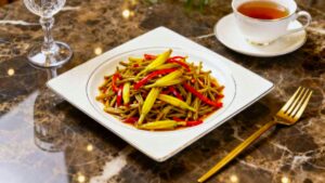 This is a light and nutritious vegetarian dish, where yam slices remain tender and crisp, complemented by simple seasonings to enhance their natural sweetness.