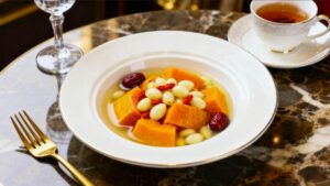 这是一道色泽鲜亮、口感嫩滑的斋食菜肴,菜心清脆鲜甜,搭配香菇浓郁的酱汁,营养丰富,味道鲜美。