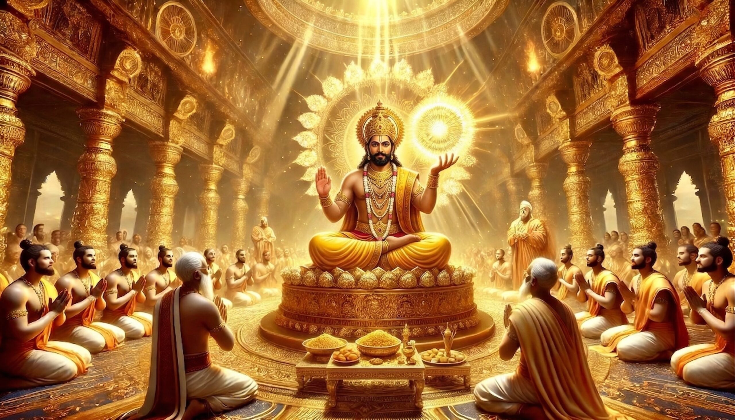 The Buddha further said to Ānanda, “In immeasurable past kalpas, five hundred sons of elders established a great assembly of giving. They raised tall banners and beat drums to proclaim: ‘Whether śramaṇas, brāhmaṇas, the poor and destitute, or even beggars, we will give equally, providing whatever is needed.’ Each of the five hundred gave treasures, elephants, horses, carriages, clothing, and food, supplying all deficiencies. At that time, a poor man traveling through many lands arrived and, seeing this great charity, asked, ‘What do you seek by giving so freely?’ They replied, ‘By this merit, we seek the path to Buddhahood.’