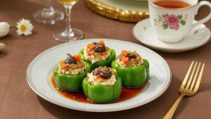 Transfer to a serving plate and enjoy. The green peppers are tender, and the filling is rich and savory with a smooth texture.