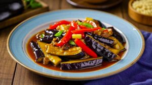 This is a tender, flavorful vegan braised dish where eggplant absorbs the rich umami sauce, creating a soft and savory meal perfect for serving with rice.