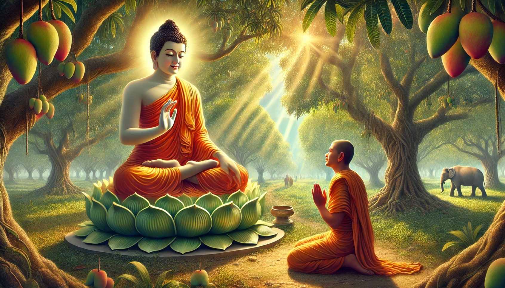 Once, the Buddha traveled to Nalanda in the kingdom of Magadha…