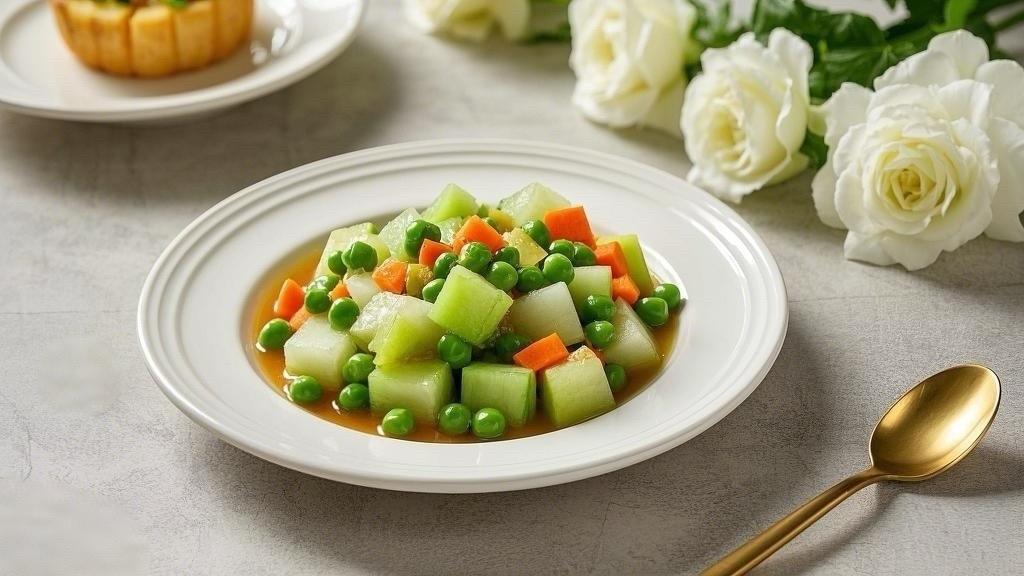 Weekly Buddhist Cuisine Menu: Diced Gourd with Green Peas