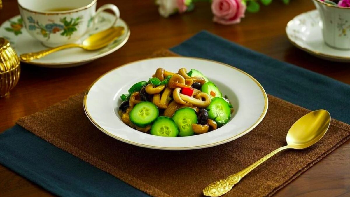 Weekly Buddhist Cuisine Menu:Stir-Fried Cucumbers with Mixed Mushrooms