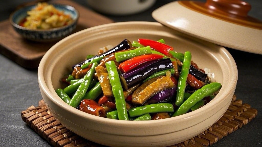 Weekly Buddhist Cuisine Menu:Braised String Beans and Eggplant in Clay Pot