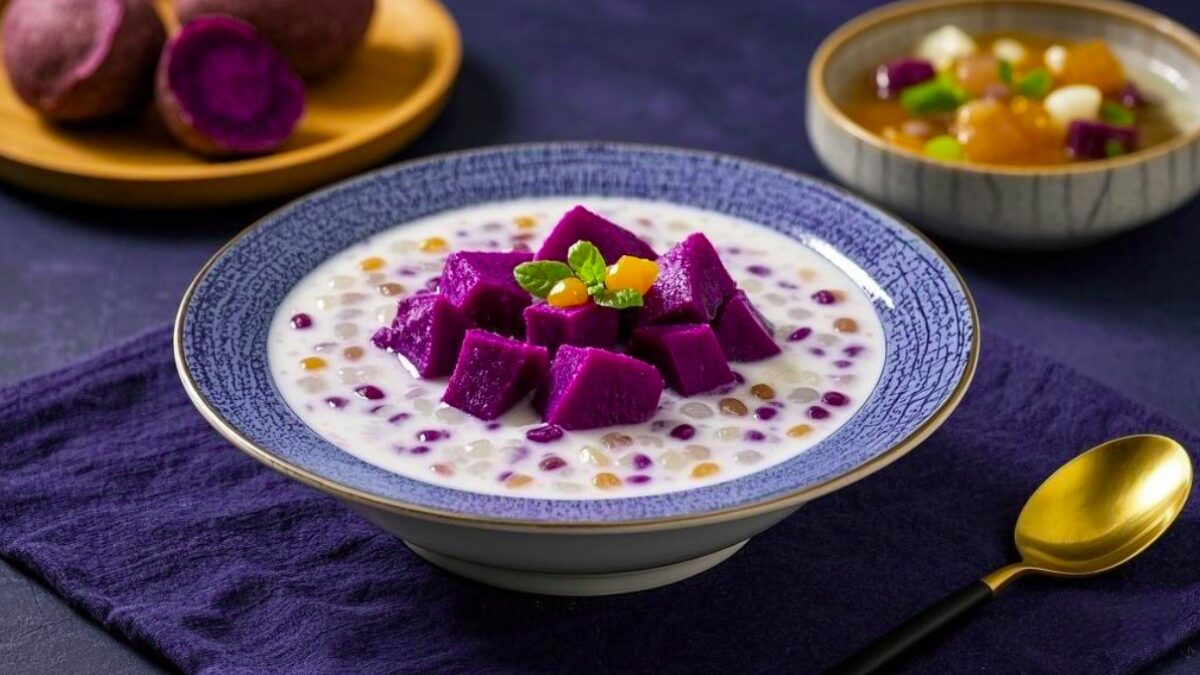 Weekly Buddhist Cuisine Menu:Purple Sweet Potato Sago Dessert