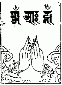 默念大轮明王咒(七遍。其咒印者。甘露军茶利菩萨念诵仪云。二手内相叉。直竖二头指相并。以二中指缠二头指初节前。各头相拄。二大指并伸直。结印当心诵咒曰)。